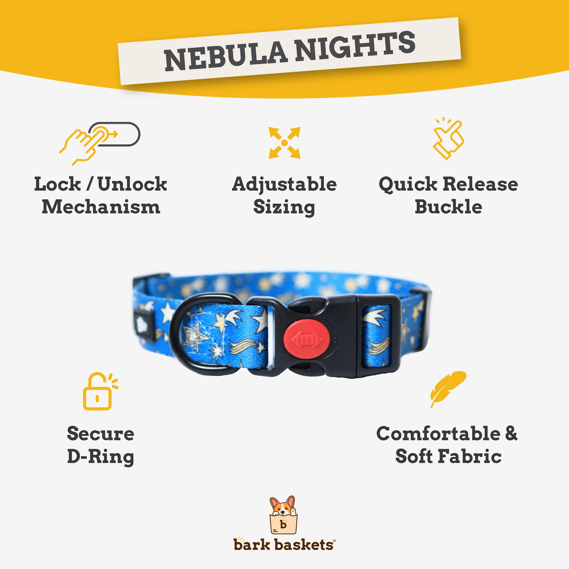 Explore the universe one walk at a time! Unleash stellar style with the Nebula Nights Dog Collar—a celestial-inspired accessory made for dogs who love to stand out. Adorned with twinkling stars and cosmic patterns, this collar brings a touch of the universe to every walk.
